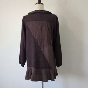 ZOE Sweater Womens Small Oversize Sweatercoat Brown Boho Patchwork Fiber Art
