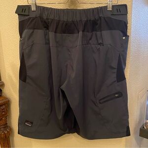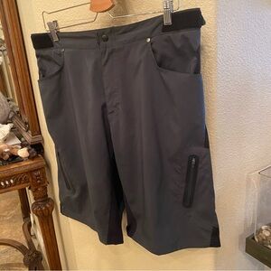 Pre-owned in great condition with no rips or stains. Men’s dark gray Ether mountain biking cycling shorts. Has self-adhesive side adjustable tabs around the waist for the perfect fit. Does not include liner inside. Comes from smoke and pet free home.
