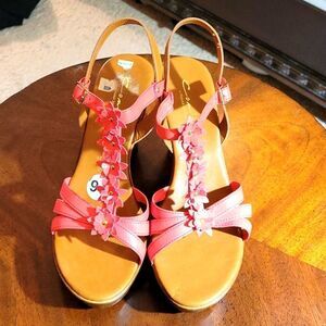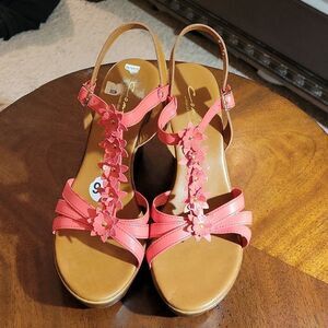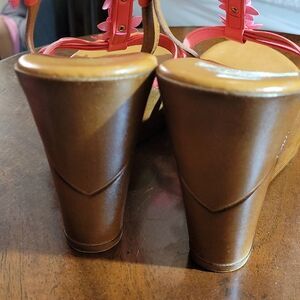 ZOLIA CONTASA ITALIAN SHOEMAKERS WEDGE STYLE OPEN TOE ANKLE STRAP WOMEN"S SANDAL SIZE 91/2 COLOR ORANGE/BROWN MADE WITH ALL MAN MADE MATERIALS THIS ITEMS IS PRE-OWNED EXCELLENT CONDITION YOU MIGHT MISTAKE FOR NEW CHECK THE PICTURES