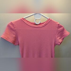 ZOOEY Women's Pink Short Sleeves Cotton Crew Neck Top. Size Small