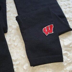ZOOZATZ Collegiate Embroidered WISCONSIN Badgers Red "W" Black Sz. L Leggings