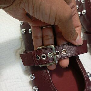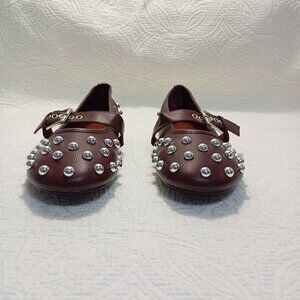 ZRSHENUTO Brown synthetic Leather Studded Flats Size 38 With Buckle Strap