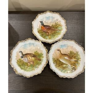 ZS and Company Antique porcelain Bavarian bird plates set 3