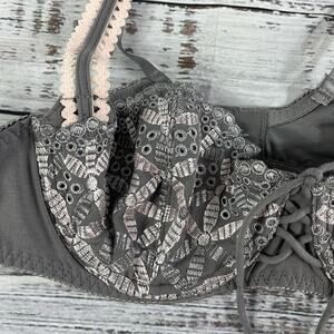 ZSKason Demi Bra size 34B Gray Pink Lace Underwire Lingerie