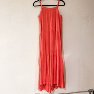 SO cute and in good preowned condition from Z Supply! The Laila Maxi Dress is too good not to have in your wardrobe! This adjustable spaghetti strap dress features a tiered, flowy skirt with heavy shirring. Our crinkle rayon fabric flows with ease and is a perfect blend of casual yet elevated that will have you looking for any occasion to wear it. Coral in color. Size medium.