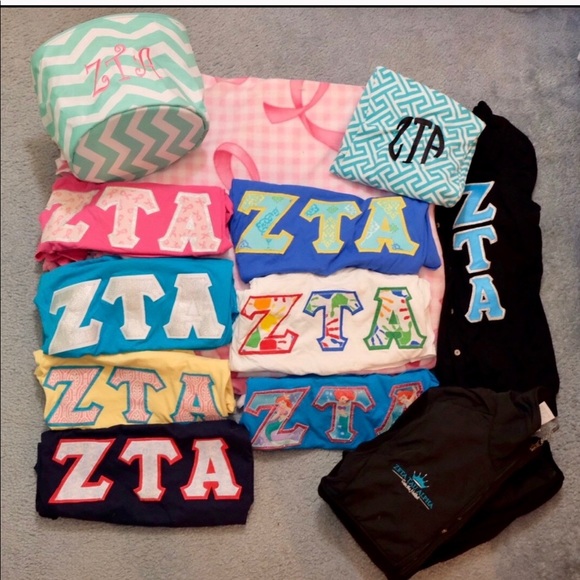 9 shirts, 1 sweatshirt, makeup bag and button included. Everything is size Small.