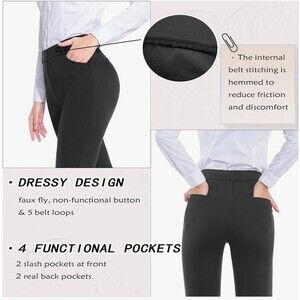 • DRESSY DESIGN: Flat front, non-functional button, belt loops and faux fly. Elastic waist for easy pull on closure, mid rise. Great for office or daily activities, like yoga, golf, lounge, date night.