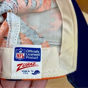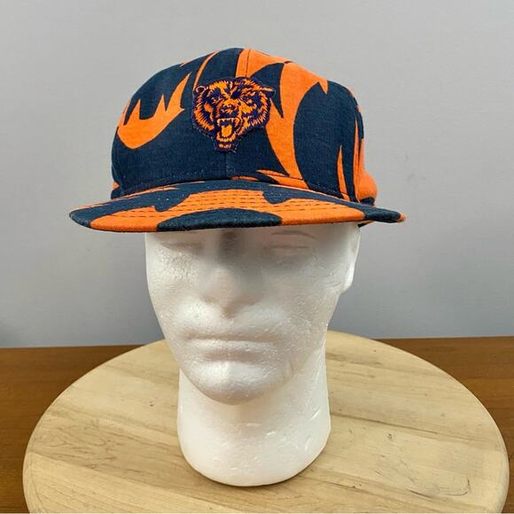 Embrace '90s nostalgia with this vintage ZUBAZ NFL Chicago Bears "All Over Print" (AOP) strapback hat. Featuring Zubaz's iconic bold stripes in Chicago Bears colors, this men's cap is a true collectible for any fan of retro sports apparel. Made in the USA, its classic strapback design ensures an adjustable and comfortable fit, showcasing an unmistakable and vibrant team spirit.