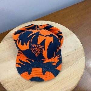 Zubaz, Vintage, NFL, Chicago Bears, Striped, Strapback, Men's Hat, Cap, AOP (All Over Print), Made in USA, Retro, 90s Fashion, Sports Apparel, Football, Collectible, Fan Gear, Headwear, Classic.