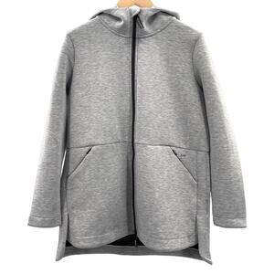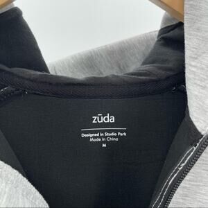ZUDA Zip-Front Hooded Scuba Jacket Gray Black Knit Athleisure Light