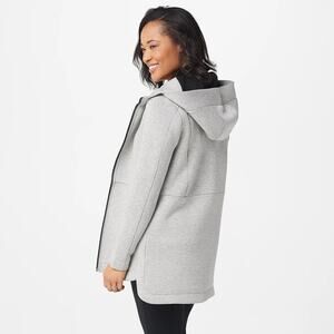 ZUDA QVC Zip-Front Hooded Scuba Jacket Gray Black Knit Athleisure Light Medium