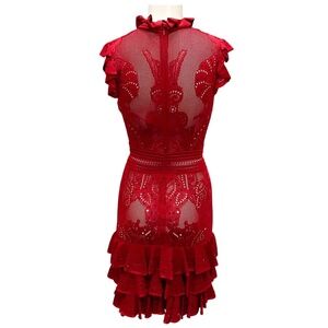 Zuhair Murad Red Crystal Embellished Knit Cocktail Dress