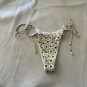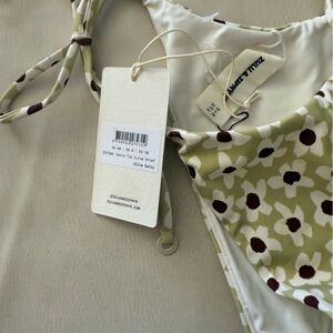Size 6flattering and retro-inspired, these bikini bottoms are featured in a low-rise fit and soft fabrication with a curved waistband and cheeky bottom coverage. **Fit:** Low-rise, cheeky bottom coverage **Features:** Soft fabrication, floral print detail, curved waistband, flattering high-cut legs, adjustable side-tie detailing, lined **Why We ❤ It:** These bikini bottoms are the perfect retro-inspired addition to any swimwear collection. Zulu & Zephyr Tie Curve Brief Bikini Bottoms in Olive Daisy, Size: US 8