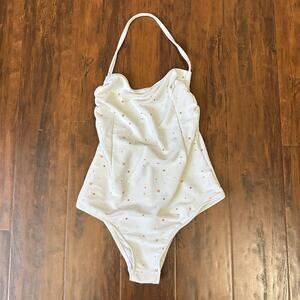 ZULU & ZEPHYR Swimsuit Womens M White One Piece Halter Neck Ribbed Summer Beach W11838