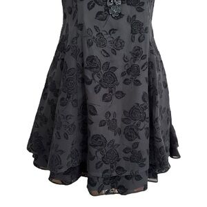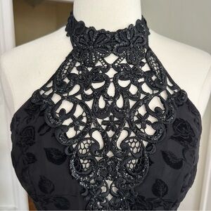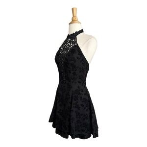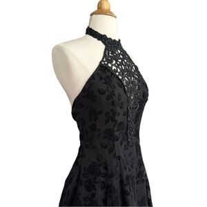 ZUM ZUM Vintage 80s Black Halter Mini Dress Whimsigoth Witchy Velvet Floral Size Small
