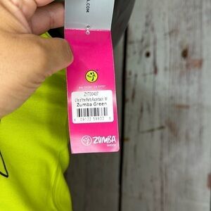 ZUMBA FITNESS sporty stretchy black tank top Green “Join the Party” Large NWT
