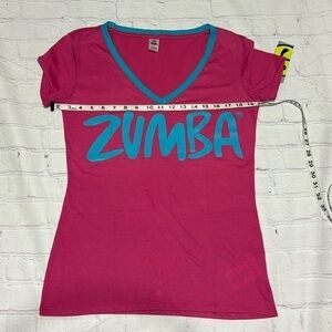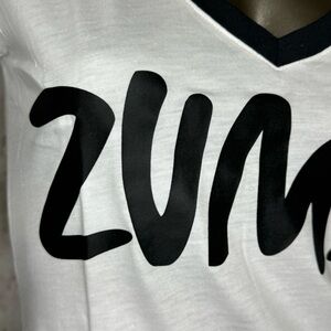 ZUMBA FITNESS women’s V-Neck Tee in White “Join The Party” Large NWT