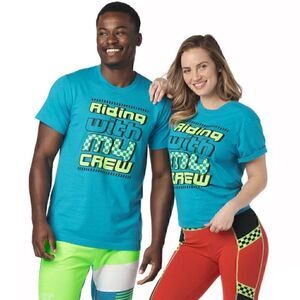 ZUMBA “Riding with My Crew” unisex tee bright blue available in m/l xl/xxl