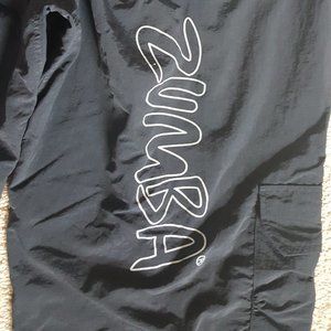 ZUMBA black drawstring pants nylon side back pockets X Large XL cargo athletic