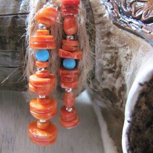 HAND MADE SPINY OYSTER & SLEEPING BEAUTY TURQUOISE EARRINGS