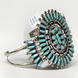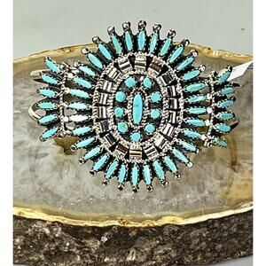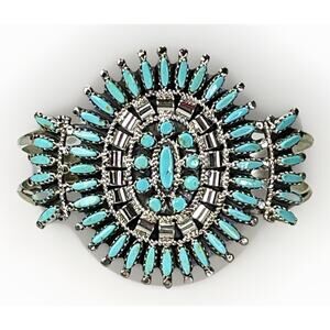 ZUNI Sterling Silver Kingman Turquoise Cluster Bracelet Signed N & R Nez - NEW