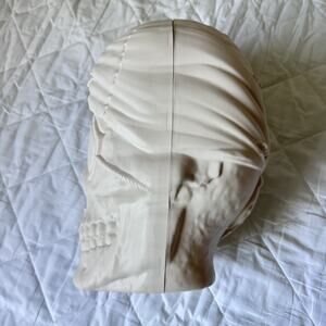 Pirate skull features detailed sculpting, bandana, eyepatch, and crack textures