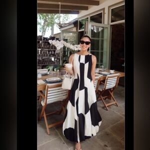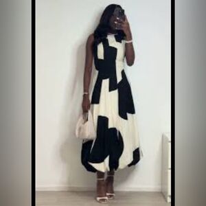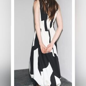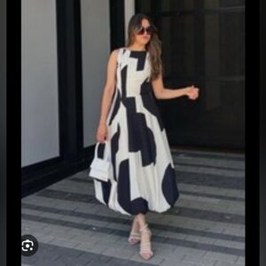 Elegant black and white abstract dress perfect for any occasion. Stand out with its unique design and comfortable fit.