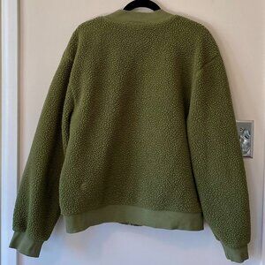 ZYIA ACTIVE Olive Green Flying V Fleece Bomber Jacket XXL Cozy Nubby Texture