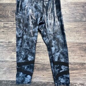 ZYIA Active Black Metallic Gray Leggings High Waist Womens size 14-16