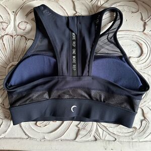 ZYIA Active Blue Twilight All Star Bra. Beautiful navy blue with iridescent shimmer. One More Rep on back zipper. Size Medium. Excellent Used Condition.