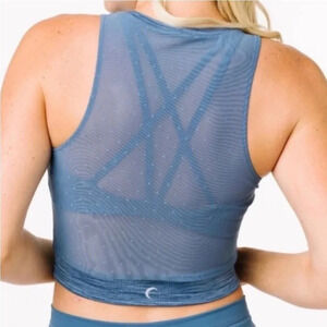ZYIA Active Calm Blue Luxe High Neck Mesh Tank Size Large