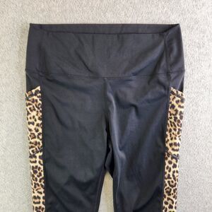 ZYIA Active Leggings Womens 12 Black Leopard Print Cropped Pockets High Rise