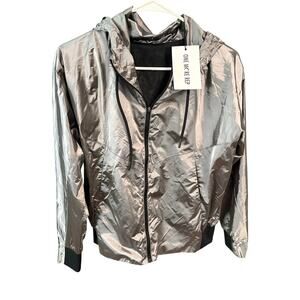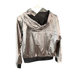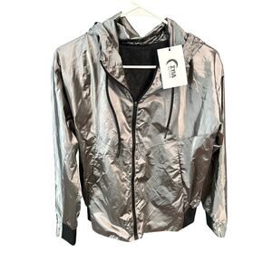 ZYIA Active Metallic Silver Windbreaker Jacket Hooded Zip Front