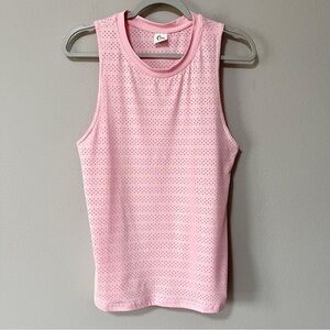ZYIA Active Chill Tank in Pink Blossom. Size small. Ventilated w/ mesh. Sleeveless. Crew neck. Moisture wicking. Perfect for layering with a sports bra. Polyester/spandex. Retailed for $44. Pre-owned, excellent used condition.