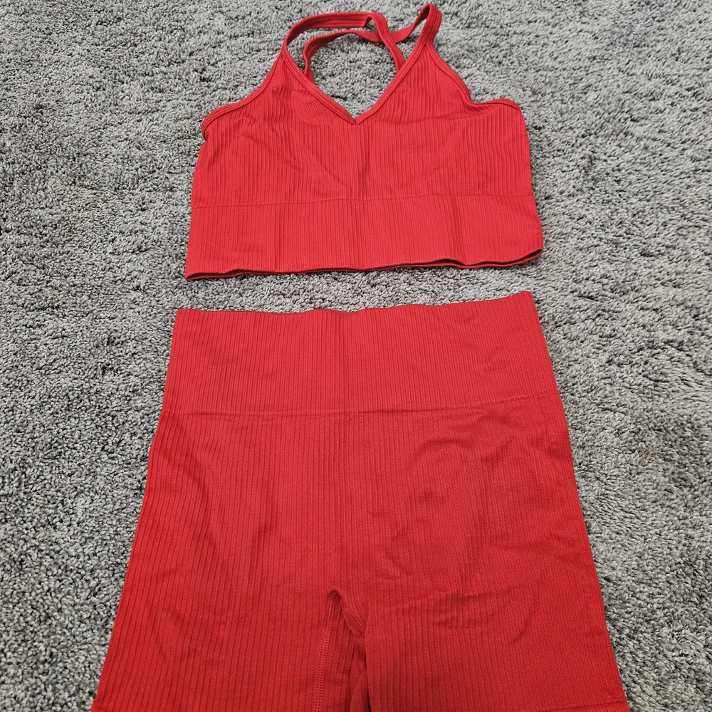 Vibrant red ribbed top by ZYIA Active. Ideal for workouts or casual wear.