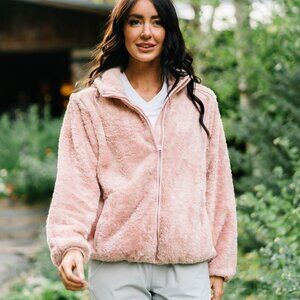 ZYIA Active Sherpa Block Zipper Jacket in Blush