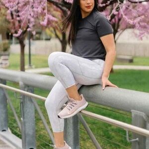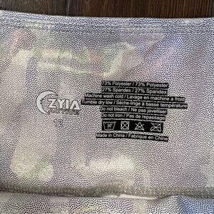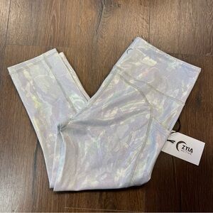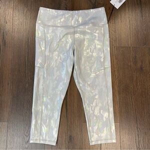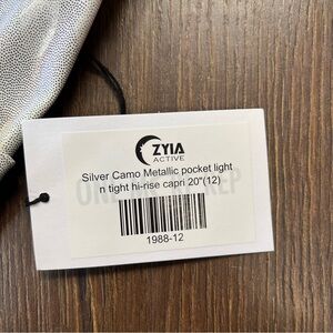 🆕 ZYIA Active Silver Camo Metallic pocket light n tight hi-rise capri 20" SZ 12