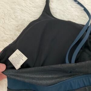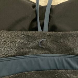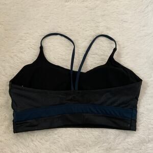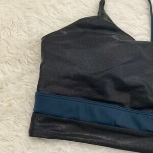 ZYIA Active strappy metallic sports bra. Black and blue colors.