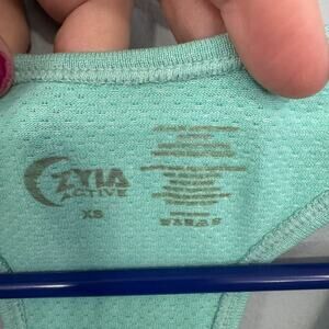 ZYIA Active Wear Racerback Tank Top in women's size XS. Stretchy, Spandex Blend. Light, minty green. Sleeveless shirt in good used condition with no flaws or stains other than some wash wear. Please see close-up pictures for condition details. Pit to pit measures approx 14.5 in across when laid flat and unstretched, and length from top of front shoulder to bottom hem measures approx 25.75 in.