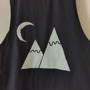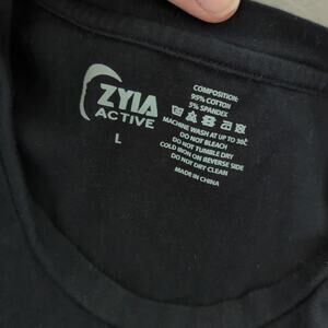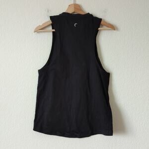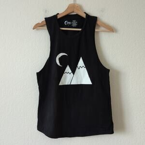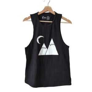 ZYIA Active women's top size large cotton spandex sleeveless workout muscle tee tank black with mountains moon length 26 pit to pit 18" In excellent pre-owned condition!