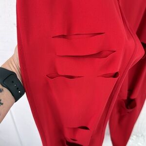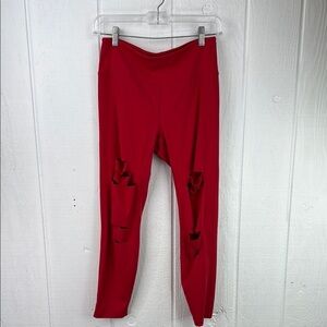 ZYIA Active Women's Red Slash Distressed Leggings Athletic Stretch 24” Size 6-8