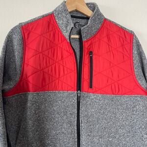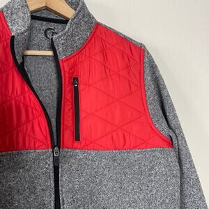 ZYIA Activewear Full Zip Fleece Jacket Size XL.ZYIA Active women’s “Ash Cabin Quilted Jacket” in the neutral colorway called “Red / Heathered Grey.”