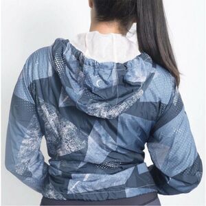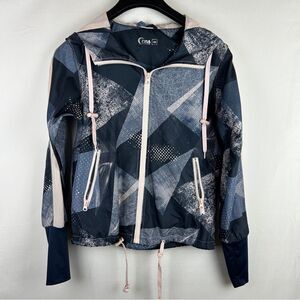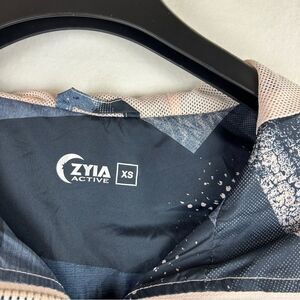 ZYIA Activewear Geometric Radical Bomber Full Zip Hooded Windbreaker Jacket XS
