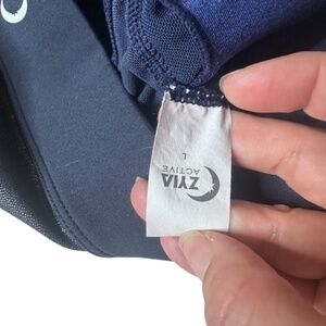 Zyia All Star Mesh navy bra size large. Mesh upper. Racerback. dark silver / metal colored accent on front and back. zip up back .