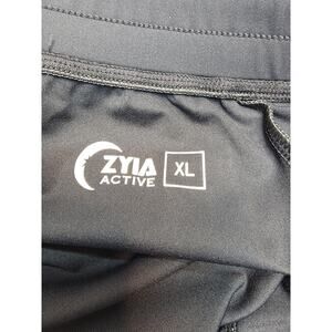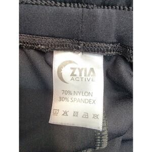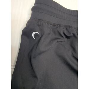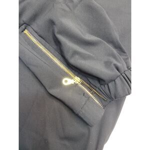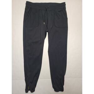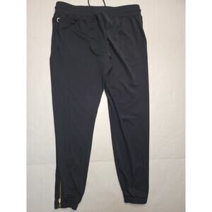 Comfortable black track pants. Features drawstring waist and ankle zippers. Perfect for active wear.