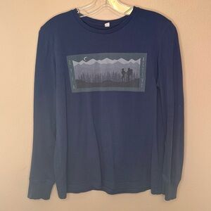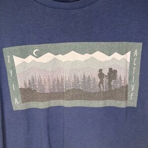 ZYIA Blue Long Sleeve Tee with Graphic Design Size Small