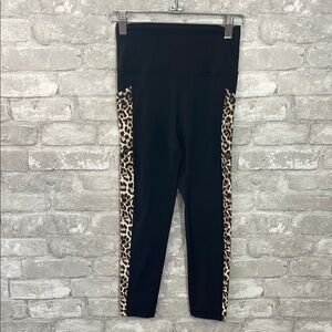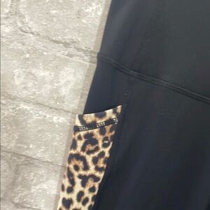Stylish black leggings featuring a chic leopard print design. Perfect for adding a touch of wild elegance to your wardrobe.