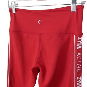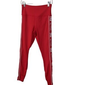 ZYIA Light N Tight Red Logo Text Leggings EUC Size 6-8