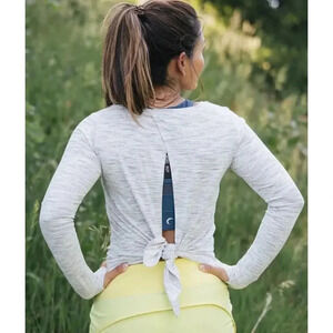 ZYIA Namaste Top Open Tie Back Long Sleeve Heather Gray Size Large