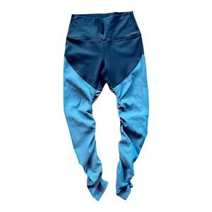 ZYIA Color Block Leggings Ruched Storm Parallel Leggings Gray Blue 2 XS